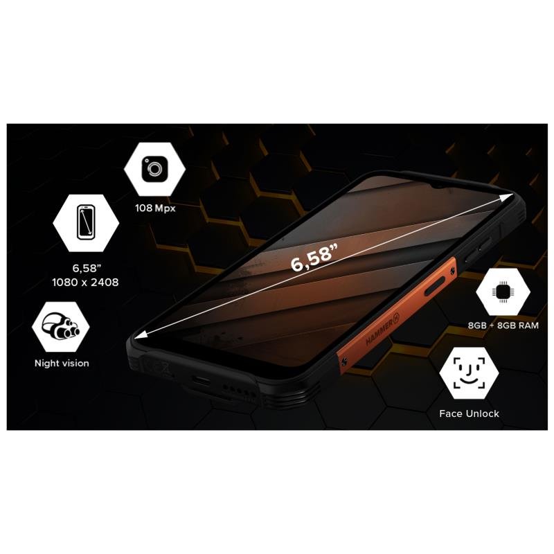 Κινητό Τηλέφωνο Hammer Energy X2 5G (Dual SIM) 256GB 8GB RAM Μαύρο-Πορτοκαλί
