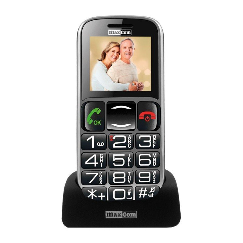 Maxcom MM462BB (Single Sim, Mini Sim) 1.8″ με Μεγάλα Πλήκτρα, Bluetooth, Ραδιόφωνο (Λειτουργεί χωρίς Handsfree), Φακό, Κάμερα και Πλήκτρο Έκτακτης Ανάγκης. Περιλαμβάνεται φορτιστής με βάση γραφείου, Hands Free, Καλώδιο φόρτισης. Άλλες γλώσσες: Ρωσικά (RU), Αγγλικά (EN), Σλοβενικά (SI), Τσέχικα (CS), Πορτογαλικά (PT).